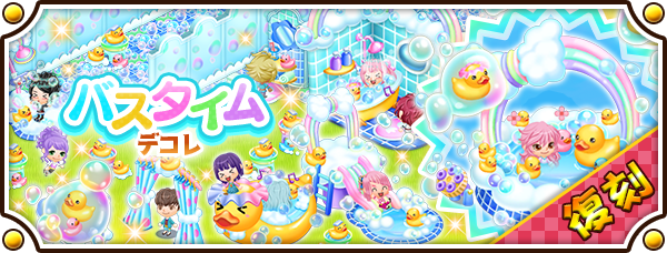 施設ルーレットにて、期間限定で「バスタイムシリーズ」のデコレーションが手に入ります。