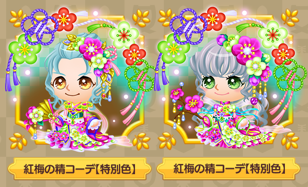 期間:2026/3/29(日) 00:00 ~ 2026/3/30(月) 23:59 おまけプレゼントキャンペーン開催! 今回はおまけに「紅梅の精コーデ【特別色】【型紙】」が新登場✨ 期間中に10000円、15000円以上の購入を行った方へ、おまけとしてアイテムをプレゼント致します。 【開催期間】3/29 00:00 ~ 3/30 23:59 【おまけ配布日時】3/31 特別なこの機会をお見逃しなく! 10,000円以上の購入おまけ内容 紅梅の精コーデ【特別色】【型紙】男 ×1 15,000円以上の購入おまけ内容 紅梅の精コーデ【特別色】【型紙】女 ×1 ※おまけは1アカウントにつき、1回のみの付与となります。 ※15000円以上購入を行った方は、計2種のアイテム付与となります。 ※おまけはキャンペーン終了後、ゲーム内の手紙にて後日配布いたします。 ※入手したコーデは、アパレル工房に型紙として反映されます。 ※コーデの作成は、裁縫スキルが必要な場合があります。 ※期間終了後であっても、 再度配布を行うことがございますので予めご了承ください。 ※運営上、予期せぬ理由によって内容や予定が変更となる場合がございます。 ※利用規約の定めに反すると判断した際はキャンペーンの停止、または中止する場合があります。